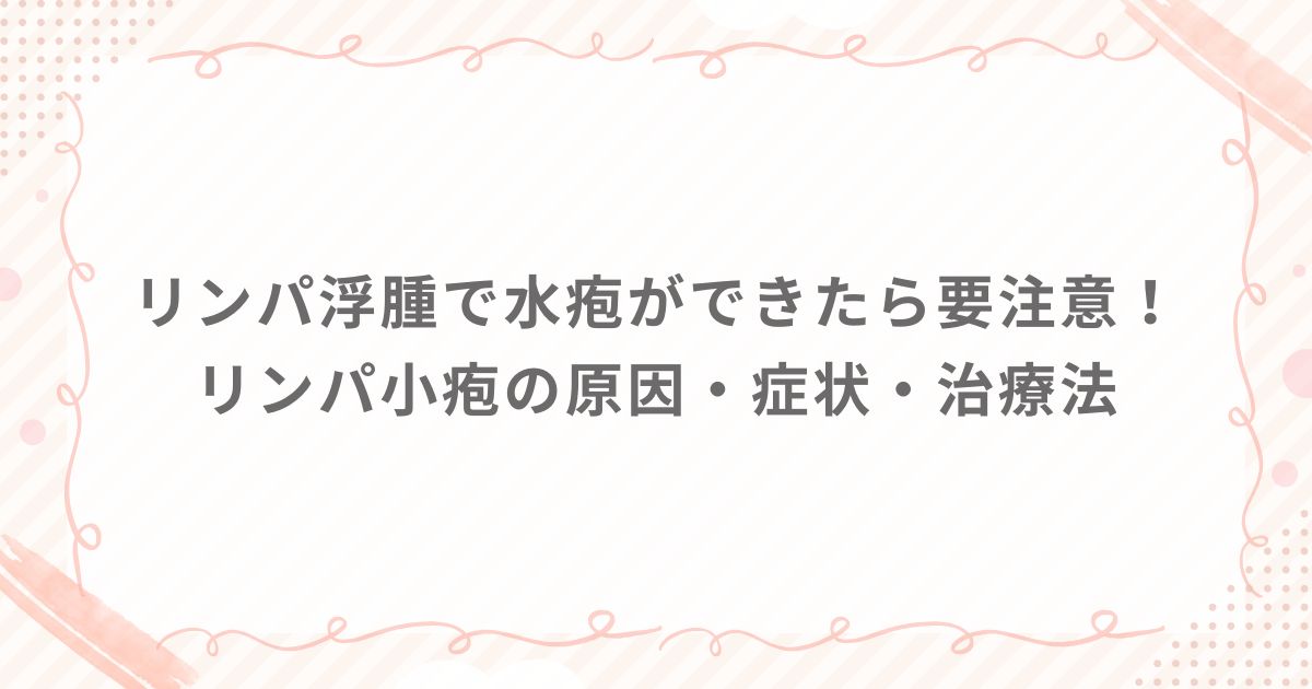 続きを読むがんの治療後にリンパ浮腫を発症した部位に水疱を見つけ、「症状が悪化しているのではないか」と不安になっていませんか。 リンパ液の流れが悪くなったリンパ管がふくれ、皮膚の表面に水ぶくれのように出てきた状態…