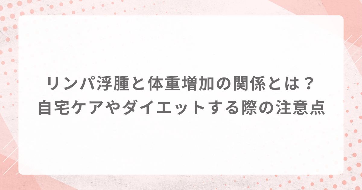 続きを読む「体重増加と同時に、体のむくみがひどくなっている」と感じていませんか。過去にがん治療を受けた方であれば、リンパ浮腫を発症している可能性があります。 脂肪がリンパ管を圧迫し、リンパ液の流れが滞るため、肥…