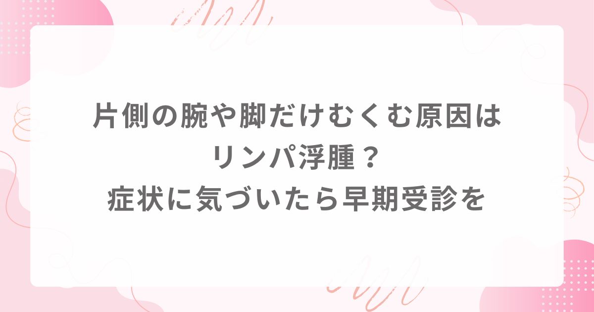 続きを読む腕や脚が片側だけむくみ、「リンパ浮腫を発症したのではないか」と不安を抱えていませんか。 飲みすぎやホルモンバランスの乱れによるむくみは、全身に症状が表れ、時間の経過とともに軽快することがほとんどです。…