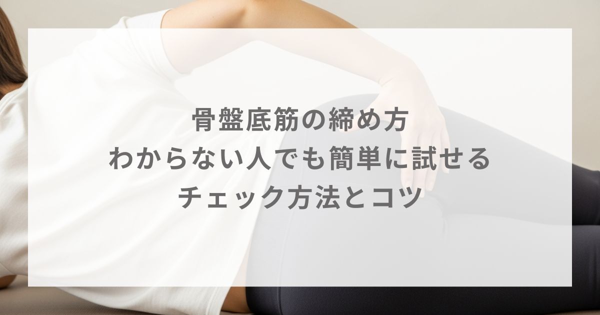 横向きに寝転び、リラックスした状態で、坐骨と尾骨の中間部分(肛門の脇あたり)に親指を除いた4本の指を差し込みます。締めたときに筋肉の動きを指先で確認できれば、骨盤底筋が正しく働いている証拠です。