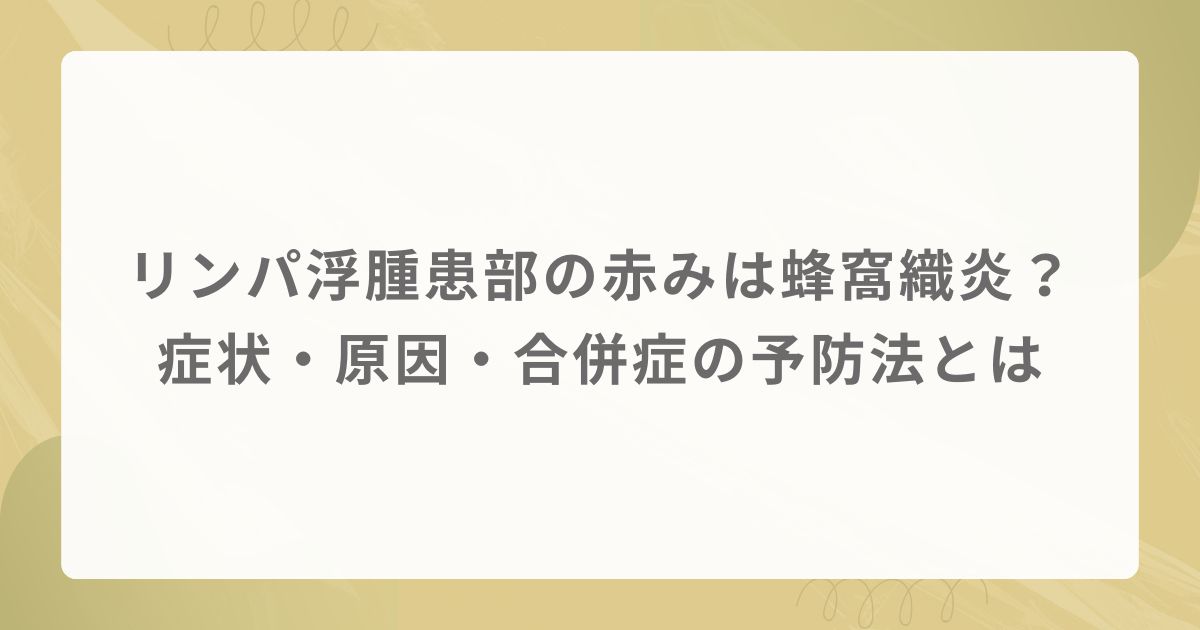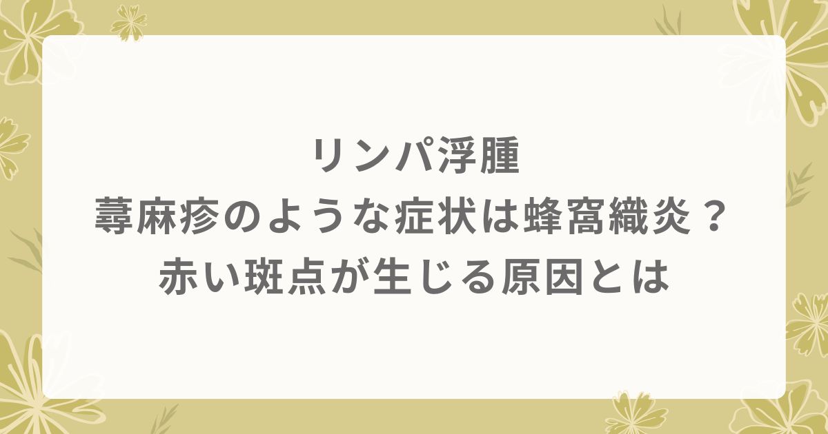 リンパ浮腫の合併症には、蕁麻疹のように赤い斑点が出る蜂窩織炎があります。「じき…